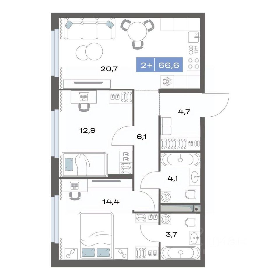 Продаётся 2-комнатная квартира в строящемся доме (Корпус 1.4), срок сдачи: III-кв. 2026, общей площадью 66.6 кв.м., на 1 этаже. Новый жилой комплекс "Толк Академический" от застройщика "СЗ Капитан" расположен по адресу: г. Екатеринбург, улица Академика Парина.