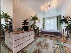 Квартира теплая, отремонтированная. Санузел совмещенный, кухня-гостиная. Есть две вместительные кладовые, что позволяет не заставлять квартиру шкафами.