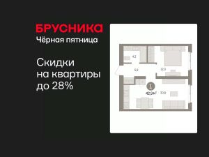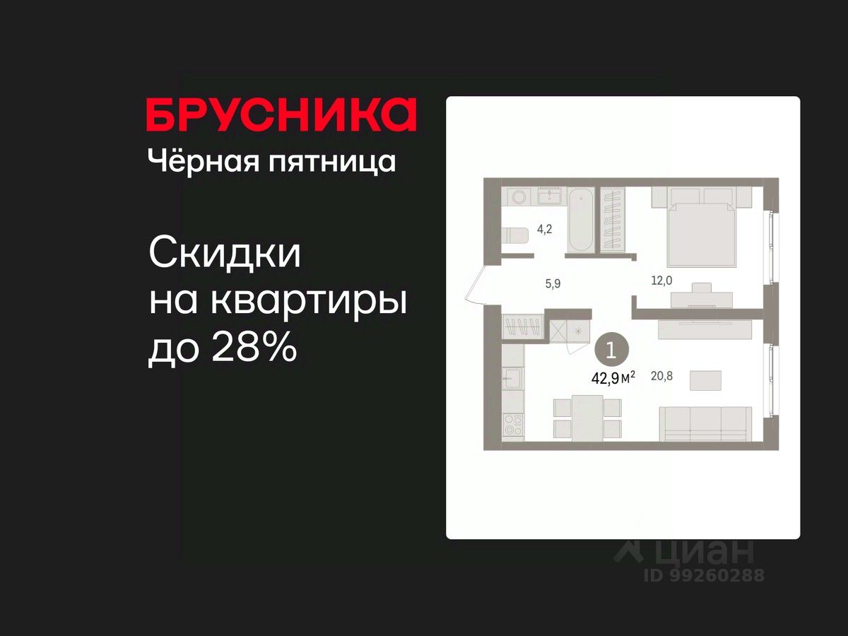 Квартира с кухней-гостиной и одной спальней в Южных кварталах. Особенности планировки: предчистовая отделка.