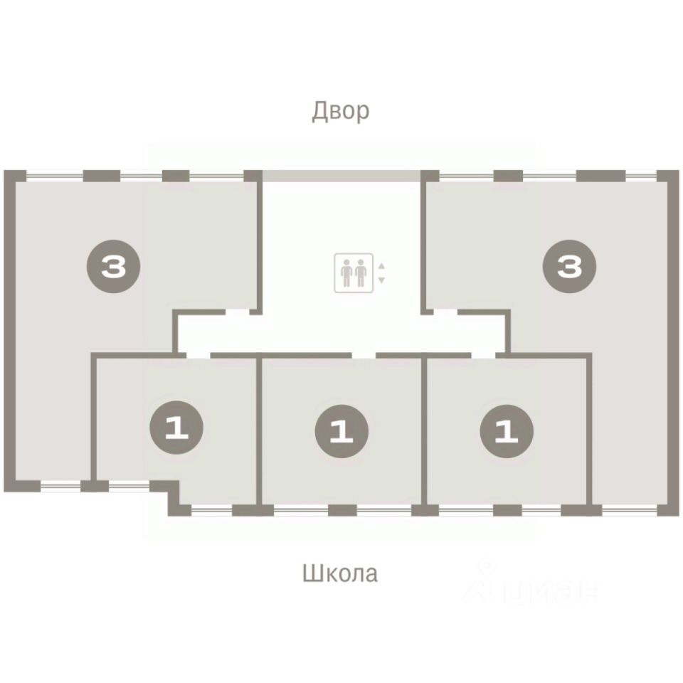 Квартира с кухней-гостиной и тремя спальнями в Бруснике в Академическом. Особенности планировки: второй санузел, гардеробная, вид во двор, разнесённые спальни, предчистовая отделка, мастер-спальня, постирочная, балкон.