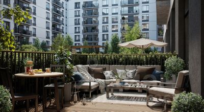 Камерные дворы квартала закрыты от машин. По нашим стандартам 70% их территории покрывает зелень. Деревья, кустарники и травы подобраны таким образом, чтобы в каждый сезон двор оставался красивым и имел свой цвет. Каждый двор разделён на зоны. В одной расположены детские площадки, в другой — места для спорта и тихого отдыха взрослых.