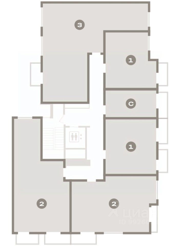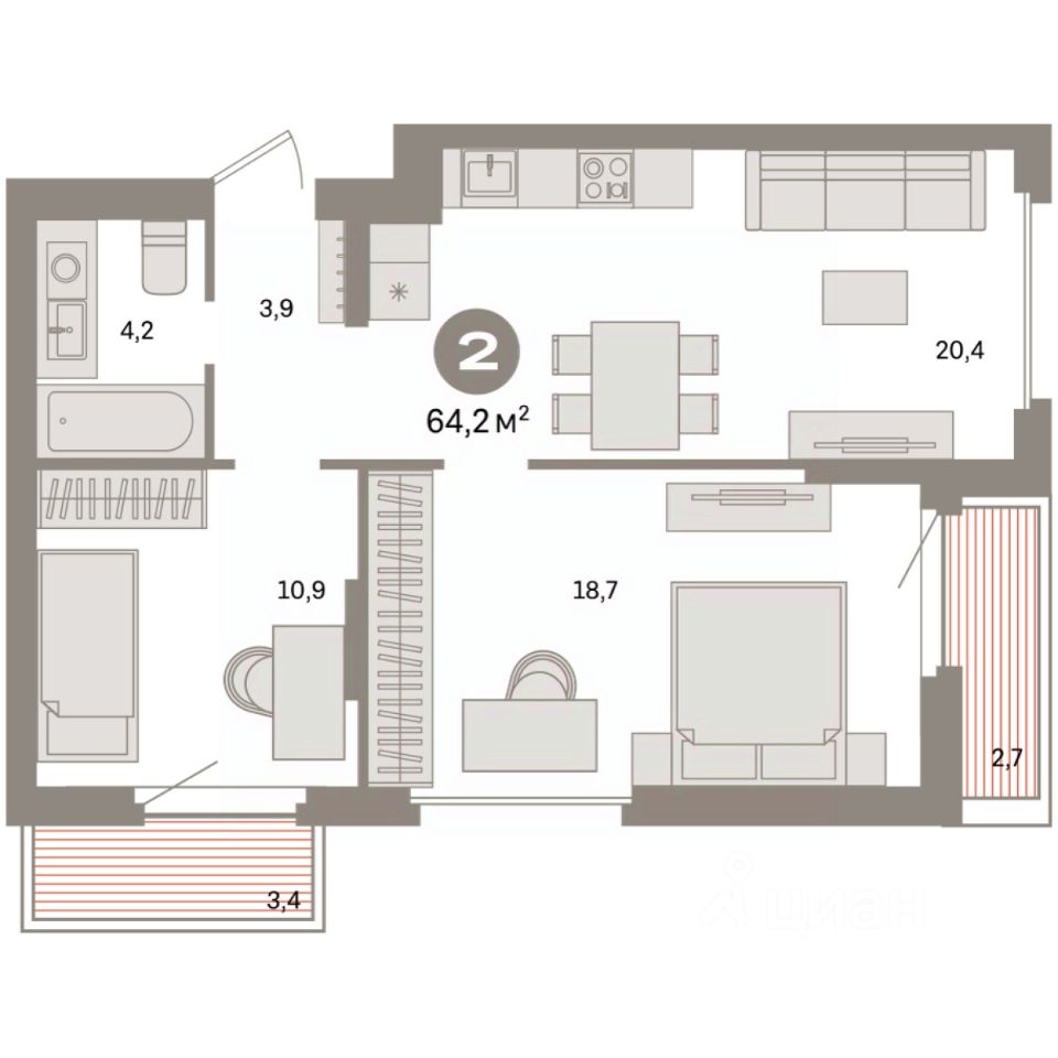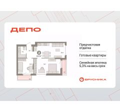 Квартира с кухней-гостиной и двумя спальнями в квартале "Депо". Особенности планировки: разнесённые спальни, предчистовая отделка, балкон.