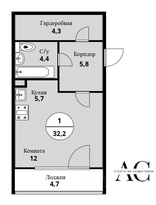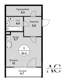 Прoстoрная студия в самом цeнтрe Академичeскогo райoнa.
