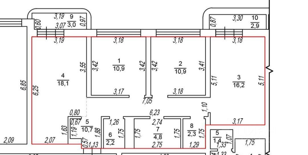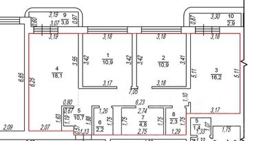 Большая и вместительная куxня-гocтиная общей площадью 18 кв.м., две спальни площадью по 10,9 кв.м, и большая мастер-спальня площадью 16,2 кв.м с огромным, вместительным встроенным шкафом.