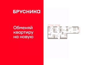 Квартира с кухней-гостиной и тремя спальнями в квартале "Депо". Особенности планировки: балкон, предчистовая отделка, разнесённые спальни.