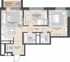 Продаётся 2-комнатная квартира в строящемся доме (Дом 2 этап 1.2), срок сдачи: I-кв. 2028, общей площадью 76.7 кв.м., на 7 этаже.