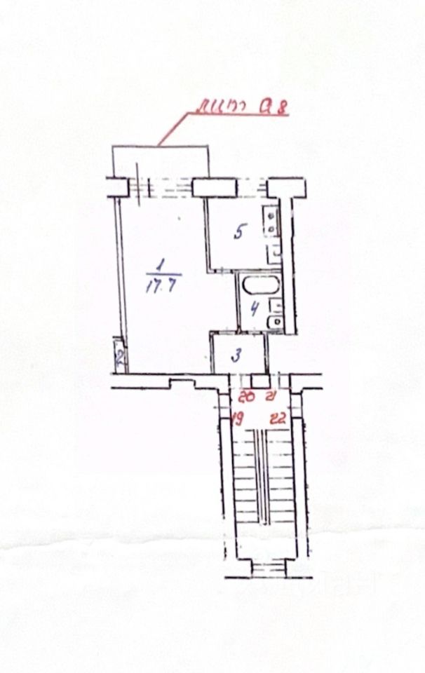 Общая площадь 29.1 кв/м. Комната 17.7 кВ/м.