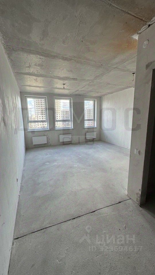 Планировка: Студия, 4 этаж, окна на Восток. Состояние: Стены оштукатурены, пол - стяжка с шумоизоляцией, выполнена разводка электрики, установлены радиаторы, окна, двери, сантехника (унитаз, раковина).