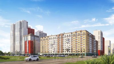 В состав жилого квартала "Меридиан" входит шестнадцать панельных домов высотой от 8 до 25 этажей с разноцветными фасадами, а также здание образовательного центра.