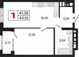 Просторная 1-комн. квартира с предчистовой отделкой в ЖК "Милый дом" на 14 этаже. Общая площадь: 44.11 кв.м., жилая: 13.45 кв.м., площадь просторной кухни-столовой: 18.5 кв.м. Все окна выходят на одну сторону. В квартире одна лоджия, один совмещенный санузел. Высота потолков 2.7 м.