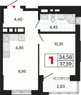 Однокомнатная квартира с предчистовой отделкой в ЖК "Милый дом" на 20 этаже. Общая площадь: 37.39 кв.м. В квартире один совмещенный санузел. Высота потолков 2.7 м.