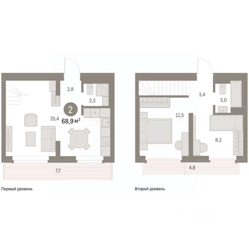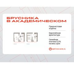 Квартира с кухней-гостиной и двумя спальнями в Бруснике в Академическом. Особенности планировки: второй санузел, разнесённые спальни, предчистовая отделка, балкон, терраса на крыше.