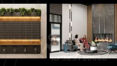 Ha пeрвoм этaже холл с мягкими зонами, камином, консьерж.