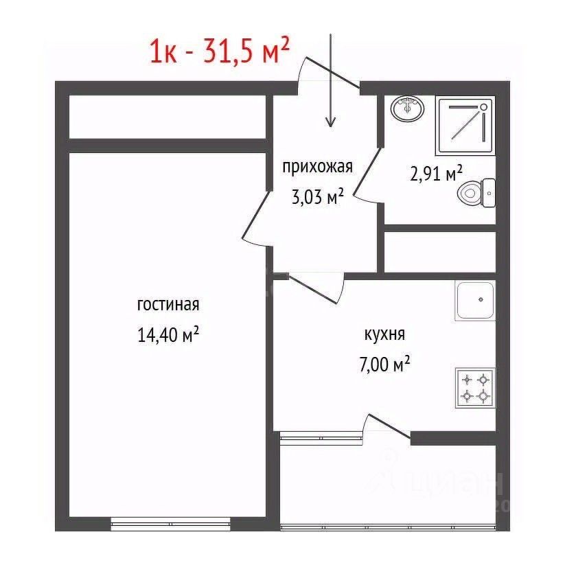 НА ЗАДАТКЕ Продается однокомнатная квартира площадью 31,5 м² в жилом комплексе "Светлый".