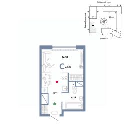 Продается студия на 14 этаже от застройщика Страна Девелопмент. Площадь квартиры 22,22 кв. м. Стоимость указана без учета акций.