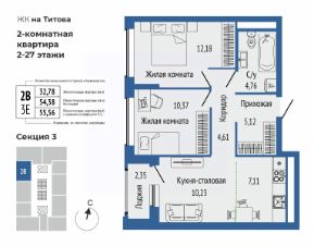 Общая площадь55,54 м²