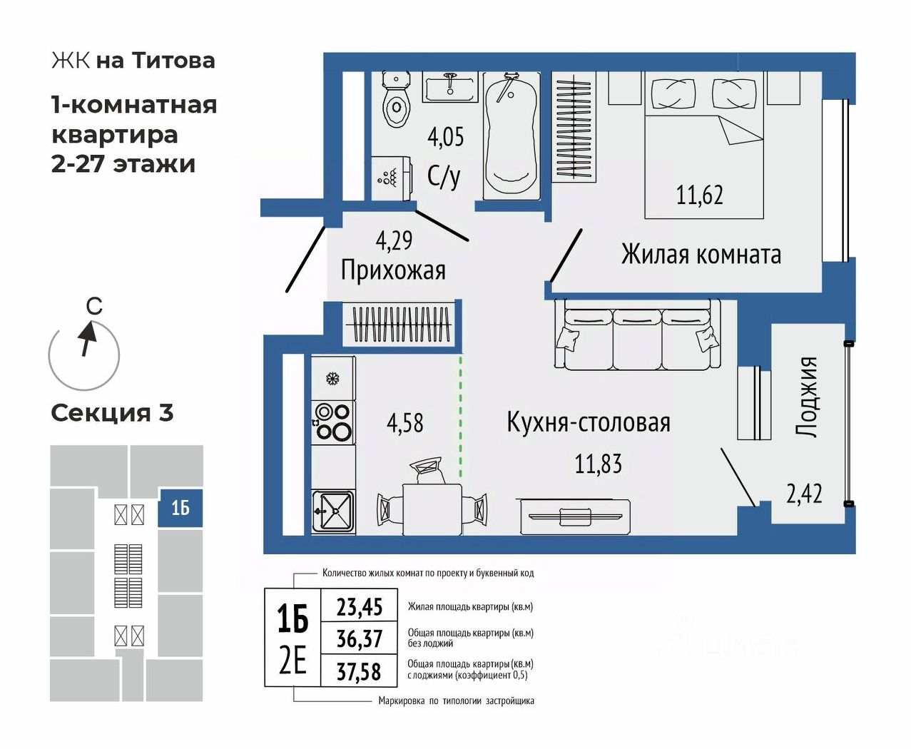 Общая площадь37,31 м²