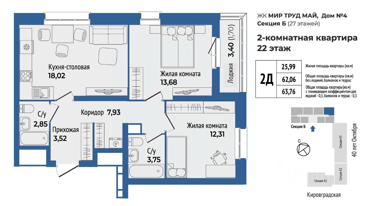 Общая площадь63,76 м²