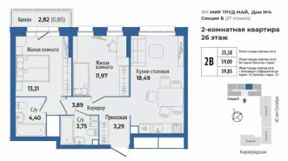 Общая площадь59,85 м²