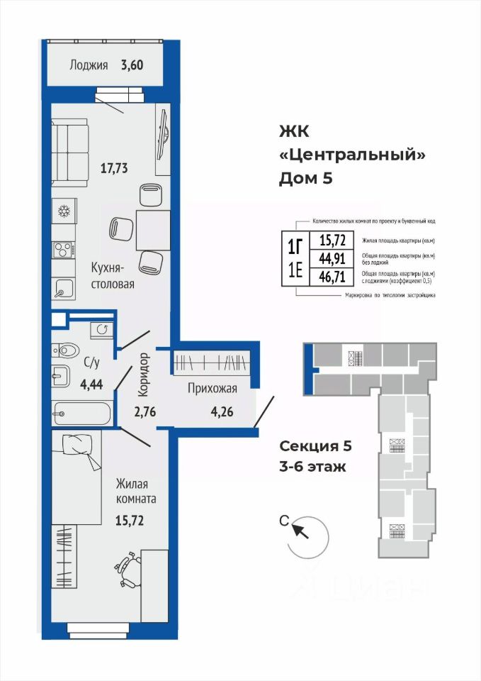 Продается 1-к квартира в жилом комплексе Центральный 5
