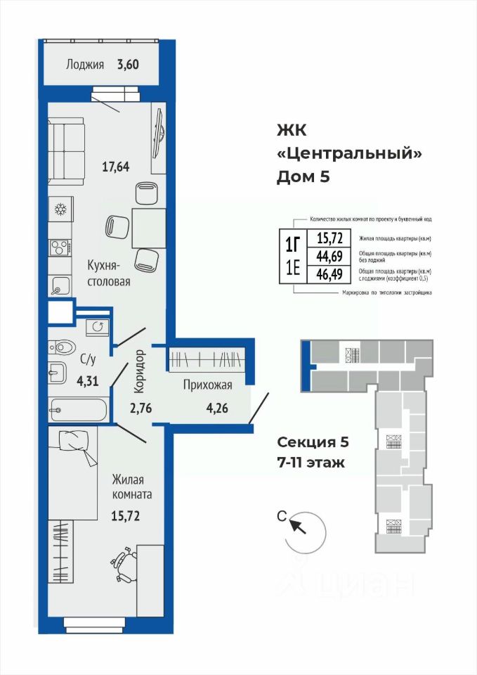 15,7 м²