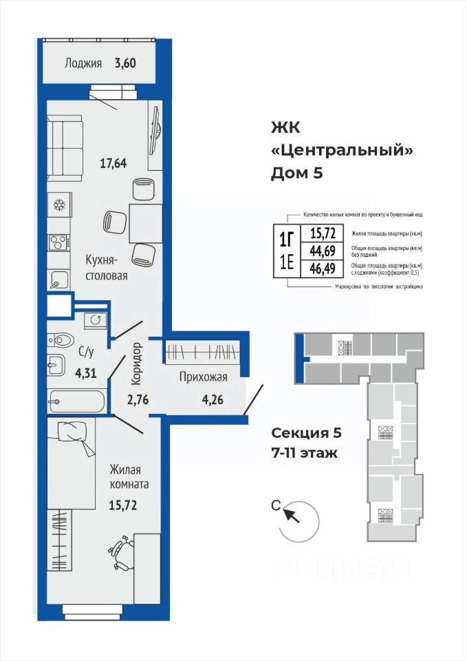Продается 1-к квартира в жилом комплексе Центральный 5