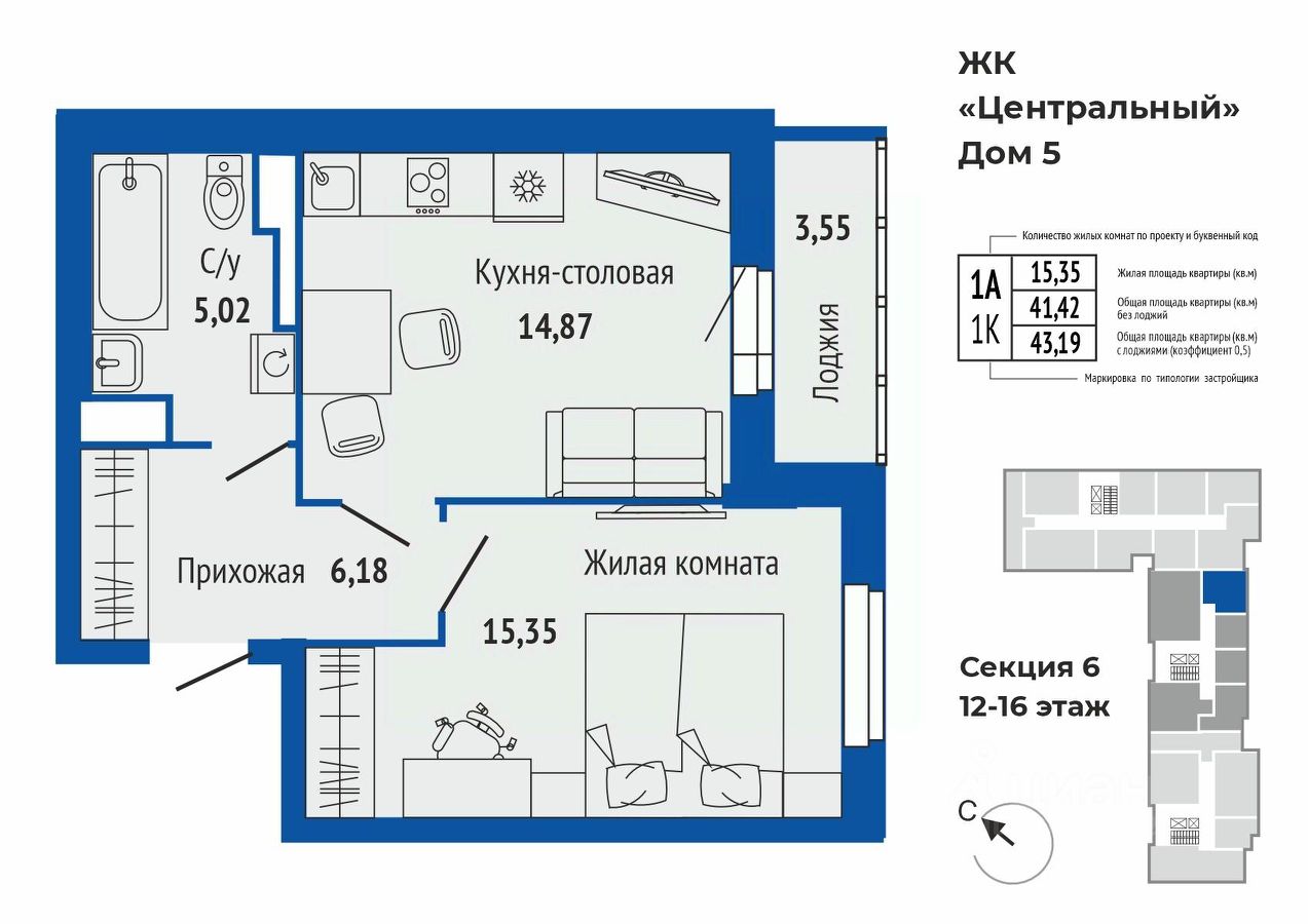 Продается 1-к квартира в жилом комплексе Центральный 5