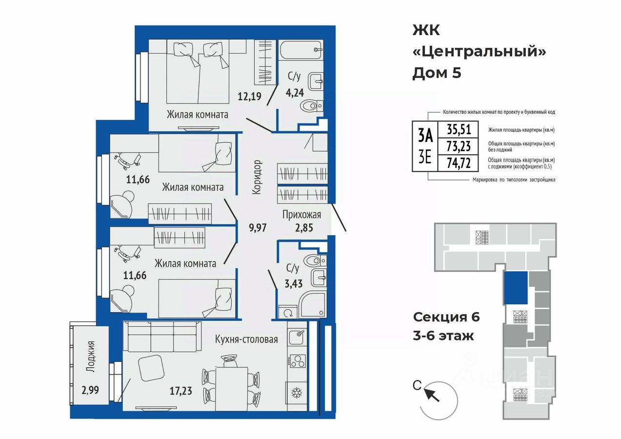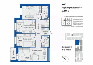 74,79 м²
