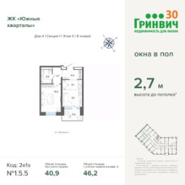 Продается квартира в ЖК Южные кварталы. Дом 4 Комплекс комфорт класса расположен в перспективном районе юг-центр. Специальные условия покупки. Уточняйте в отделе продаж "Южные кварталы" — проект комплексного развития и реновации территории. Новый район состоит из домов-кварталов переменной этажности объединенных пешеходной аллеей. • Остановка общественного транспорта у дома • 10 минут на автомобиле до центра • 10 минут на транспорте до метро "Чкаловская" • Для автомобилистов удобный выезд в город и за город с ул.Московская. • Рядом: Парк им. 50-летия ВЛКСМ и Зелёная роща, школа олимпийского резерва с бассейном, школы 175 и 143, 184, гимназии 170, детские сады 222, 233. 115 Преимущества квартир: • Отделка под чистовую • Потолок 2,7 м • Горизонтальная разводка систем отопления свободные стены • Сделаны входы для слаботочных сетей (интернет, телефон, цифровое телевидение) • Установлены розетки, выключатели, приборы учёта. • Счетчики на э/э, воду и тепло ежемесячная экономия на коммунальных платежах, Преимущества дома: • Подземный паркинг • Закрытый двор без машин • Сквозные входы связывают улицу и двор. • Входные группы расположены на уровне земли • Прозрачные и высокие входные группы. Жители видят, что происходит внутри подъезда и снаружи во дворе • Система видеонаблюдения внешнего периметра и внутренней территории • Домофон на входе в подъезд установлен в тёплом тамбуре: гостям не нужно ждать открытия двери на улице • В доме есть колясочные и велосипедные комнаты с доступом только для жителей