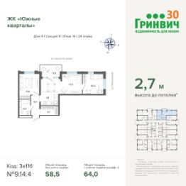 Продается квартира в ЖК Южные кварталы. Дом 4