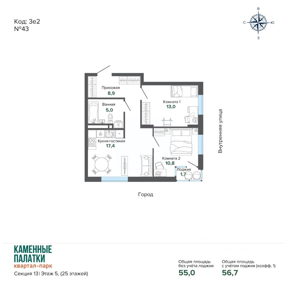 Продается квартира в современном Квартал-парке "Каменные Палатки" новый жилой комплекс комфорт-класса расположен на границе микрорайонов ЖБИ и Втузгородок, в 15 минутах от центра города рядом с природным парком Каменные палатки и озером Шарташ. В продаже 4 очередь (секция 13). Преимущества квартир: • Высокие потолки (2,7 м); • Качественная чистовая отделка: входные двери, ламинат, обои под покраску, установлена сантехника; • Горизонтальная разводка систем отопления свободные стены; • Счетчики на э/э, воду и тепло ежемесячная экономия на коммунальных платежах; • Сделаны входы для слаботочных сетей (интернет, телефон, цифровое телевидение). Преимущества дома: • Просторная закрытая придомовая территория; • Прямо из комплекса выход в природный парк Каменные Палатки; • Просторная наземная парковка и подземный паркинг; • Муниципальный детский сад в 3й очереди на 200 мест; • В жилом комплексе расположены ЖизньМарт, Монетка, Пятёрочка, пункты выдачи ЯндексМаркет, Ozon и Wildberries. Детский оздоровительный центр и стоматологическая клиника. • В нескольких минутах от дома расположены: гимназия 45, пять детских садов, гипермаркет "Магнит Семейный".