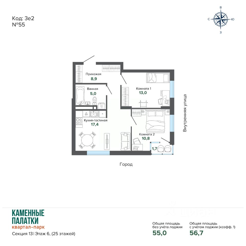 Продается квартира в современном Квартал-парке "Каменные Палатки" новый жилой комплекс комфорт-класса расположен на границе микрорайонов ЖБИ и Втузгородок, в 15 минутах от центра города рядом с природным парком Каменные палатки и озером Шарташ. В продаже 4 очередь (секция 13). Преимущества квартир: • Высокие потолки (2,7 м); • Качественная чистовая отделка: входные двери, ламинат, обои под покраску, установлена сантехника; • Горизонтальная разводка систем отопления свободные стены; • Счетчики на э/э, воду и тепло ежемесячная экономия на коммунальных платежах; • Сделаны входы для слаботочных сетей (интернет, телефон, цифровое телевидение). Преимущества дома: • Просторная закрытая придомовая территория; • Прямо из комплекса выход в природный парк Каменные Палатки; • Просторная наземная парковка и подземный паркинг; • Муниципальный детский сад в 3й очереди на 200 мест; • В жилом комплексе расположены ЖизньМарт, Монетка, Пятёрочка, пункты выдачи ЯндексМаркет, Ozon и Wildberries. Детский оздоровительный центр и стоматологическая клиника. • В нескольких минутах от дома расположены: гимназия 45, пять детских садов, гипермаркет "Магнит Семейный".