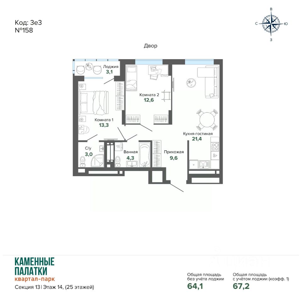 Продается квартира в современном Квартал-парке "Каменные Палатки" новый жилой комплекс комфорт-класса расположен на границе микрорайонов ЖБИ и Втузгородок, в 15 минутах от центра города рядом с природным парком Каменные палатки и озером Шарташ. В продаже 4 очередь (секция 13). Преимущества квартир: • Высокие потолки (2,7 м); • Качественная чистовая отделка: входные двери, ламинат, обои под покраску, установлена сантехника; • Горизонтальная разводка систем отопления свободные стены; • Счетчики на э/э, воду и тепло ежемесячная экономия на коммунальных платежах; • Сделаны входы для слаботочных сетей (интернет, телефон, цифровое телевидение). Преимущества дома: • Просторная закрытая придомовая территория; • Прямо из комплекса выход в природный парк Каменные Палатки; • Просторная наземная парковка и подземный паркинг; • Муниципальный детский сад в 3й очереди на 200 мест; • В жилом комплексе расположены ЖизньМарт, Монетка, Пятёрочка, пункты выдачи ЯндексМаркет, Ozon и Wildberries. Детский оздоровительный центр и стоматологическая клиника. • В нескольких минутах от дома расположены: гимназия 45, пять детских садов, гипермаркет "Магнит Семейный".