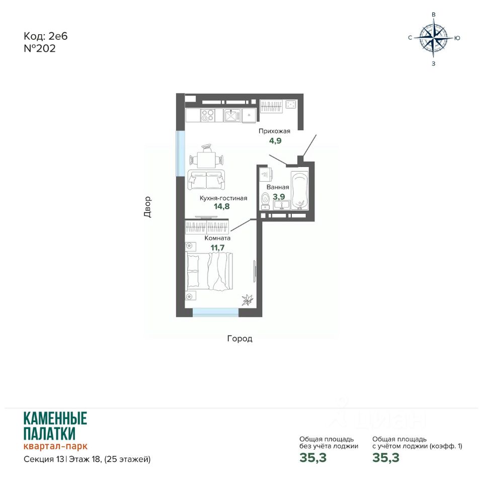 Общая площадь35,29 м²
