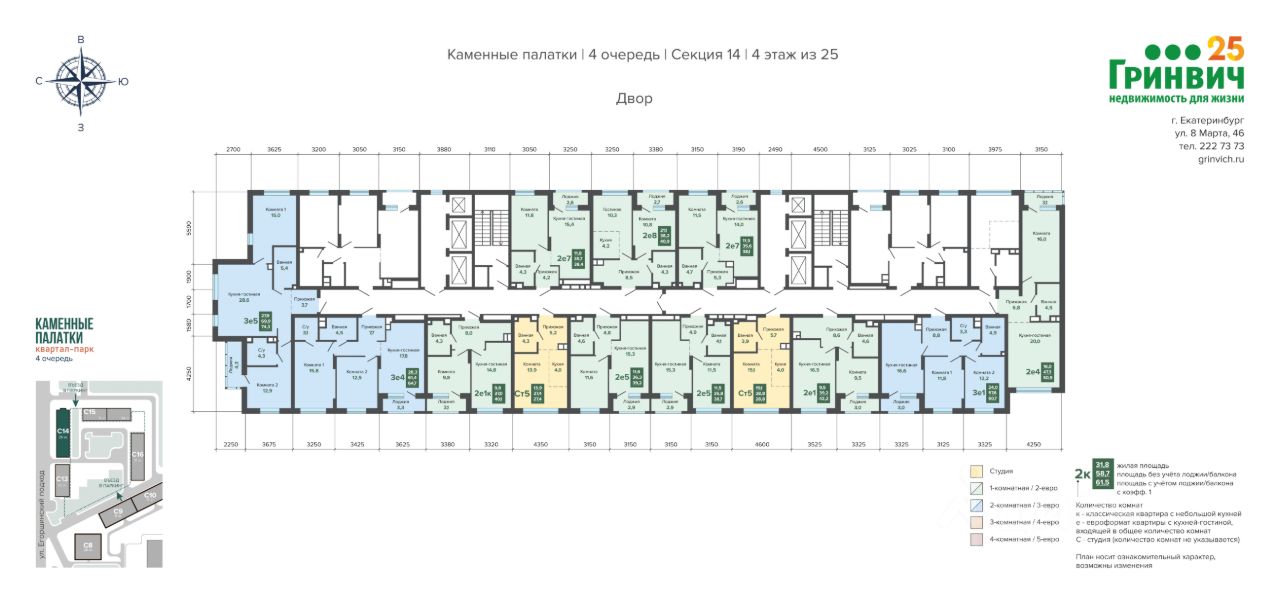 Продается квартира в современном Квартал-парке "Каменные Палатки" новый жилой комплекс комфорт-класса расположен на границе микрорайонов ЖБИ и Втузгородок, в 15 минутах от центра города рядом с природным парком Каменные палатки и озером Шарташ. В продаже 4 очередь (секция 14). Преимущества квартир: • Высокие потолки (2,7 м); • Качественная чистовая отделка: входные двери, ламинат, обои под покраску, установлена сантехника; • Горизонтальная разводка систем отопления свободные стены; • Счетчики на э/э, воду и тепло ежемесячная экономия на коммунальных платежах; • Сделаны входы для слаботочных сетей (интернет, телефон, цифровое телевидение). Преимущества дома: • Просторная закрытая придомовая территория; • Прямо из комплекса выход в природный парк Каменные Палатки; • Просторная наземная парковка и подземный паркинг; • Муниципальный детский сад в 3й очереди на 200 мест; • В жилом комплексе расположены ЖизньМарт, Монетка, Пятёрочка, пункты выдачи ЯндексМаркет, Ozon и Wildberries. Детский оздоровительный центр и стоматологическая клиника. • В нескольких минутах от дома расположены: гимназия 45, пять детских садов, гипермаркет "Магнит Семейный".