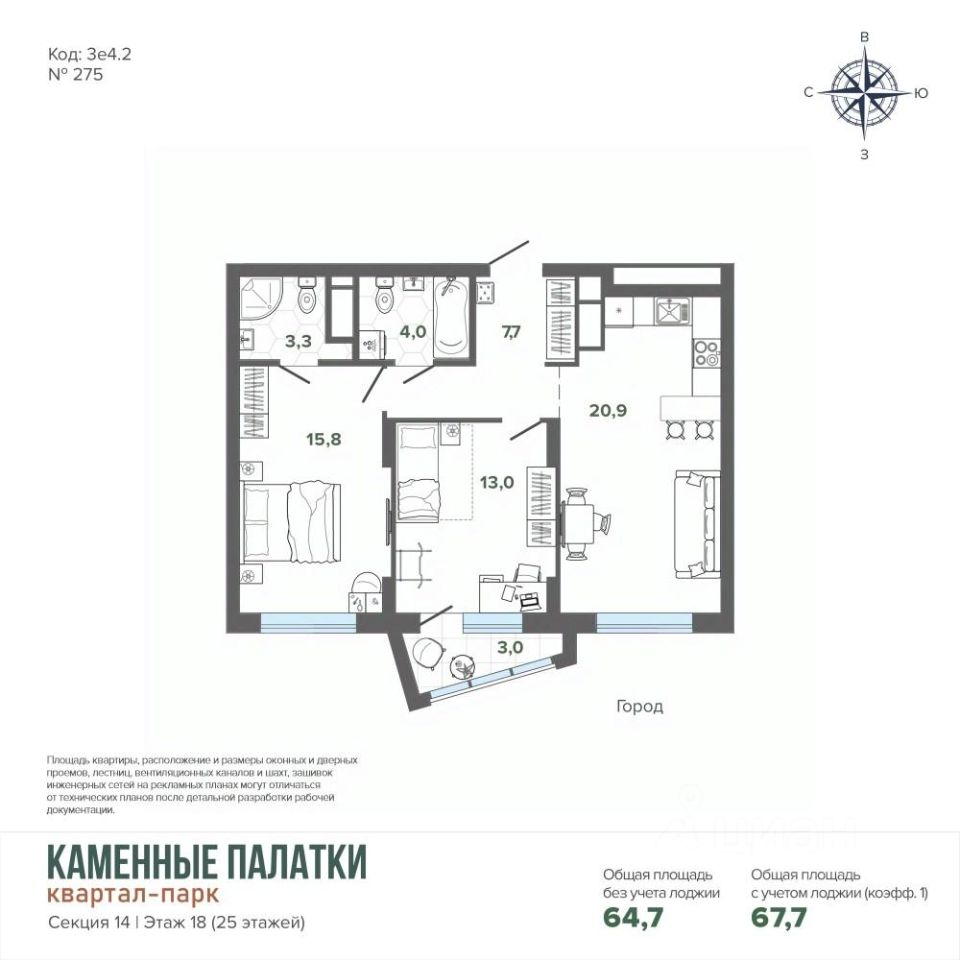 Общая площадь67,67 м²
