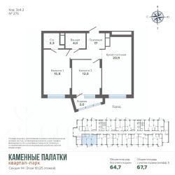 Продается квартира в современном Квартал-парке "Каменные Палатки" новый жилой комплекс комфорт-класса расположен на границе микрорайонов ЖБИ и Втузгородок, в 15 минутах от центра города рядом с природным парком Каменные палатки и озером Шарташ. В продаже 4 очередь (секция 14). Преимущества квартир: • Высокие потолки (2,7 м); • Качественная чистовая отделка: входные двери, ламинат, обои под покраску, установлена сантехника; • Горизонтальная разводка систем отопления свободные стены; • Счетчики на э/э, воду и тепло ежемесячная экономия на коммунальных платежах; • Сделаны входы для слаботочных сетей (интернет, телефон, цифровое телевидение). Преимущества дома: • Просторная закрытая придомовая территория; • Прямо из комплекса выход в природный парк Каменные Палатки; • Просторная наземная парковка и подземный паркинг; • Муниципальный детский сад в 3й очереди на 200 мест; • В жилом комплексе расположены ЖизньМарт, Монетка, Пятёрочка, пункты выдачи ЯндексМаркет, Ozon и Wildberries. Детский оздоровительный центр и стоматологическая клиника. • В нескольких минутах от дома расположены: гимназия 45, пять детских садов, гипермаркет "Магнит Семейный".