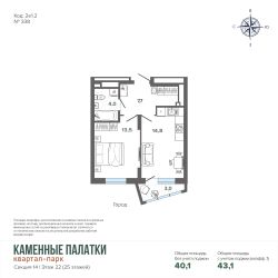 Продается квартира в современном Квартал-парке "Каменные Палатки" новый жилой комплекс комфорт-класса расположен на границе микрорайонов ЖБИ и Втузгородок, в 15 минутах от центра города рядом с природным парком Каменные палатки и озером Шарташ. В продаже 4 очередь (секция 14). Преимущества квартир: • Высокие потолки (2,7 м); • Качественная чистовая отделка: входные двери, ламинат, обои под покраску, установлена сантехника; • Горизонтальная разводка систем отопления свободные стены; • Счетчики на э/э, воду и тепло ежемесячная экономия на коммунальных платежах; • Сделаны входы для слаботочных сетей (интернет, телефон, цифровое телевидение). Преимущества дома: • Просторная закрытая придомовая территория; • Прямо из комплекса выход в природный парк Каменные Палатки; • Просторная наземная парковка и подземный паркинг; • Муниципальный детский сад в 3й очереди на 200 мест; • В жилом комплексе расположены ЖизньМарт, Монетка, Пятёрочка, пункты выдачи ЯндексМаркет, Ozon и Wildberries. Детский оздоровительный центр и стоматологическая клиника. • В нескольких минутах от дома расположены: гимназия 45, пять детских садов, гипермаркет "Магнит Семейный".