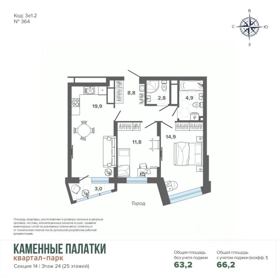 Общая площадь66,18 м²
