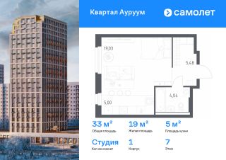 Строим кварталы для жизни с заботой о будущем. Предлагается квартира студия бизнес-класса 33 кв.м в корпусе 1 на 7 этаже, в ЖК "Квартал Ауруум"