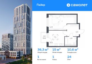 Строим кварталы для жизни с заботой о будущем. Предлагается 1-комнатная квартира комфорт-класса 36,26 кв.м в корпусе 1 на 24 этаже, в ЖК "Пайер"