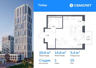 Строим кварталы для жизни с заботой о будущем. Предлагается квартира студия комфорт-класса 29,81 кв.м в корпусе 1 на 15 этаже, в ЖК "Пайер"