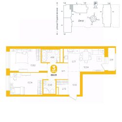 площадь квартиры - 68,01 кв.м