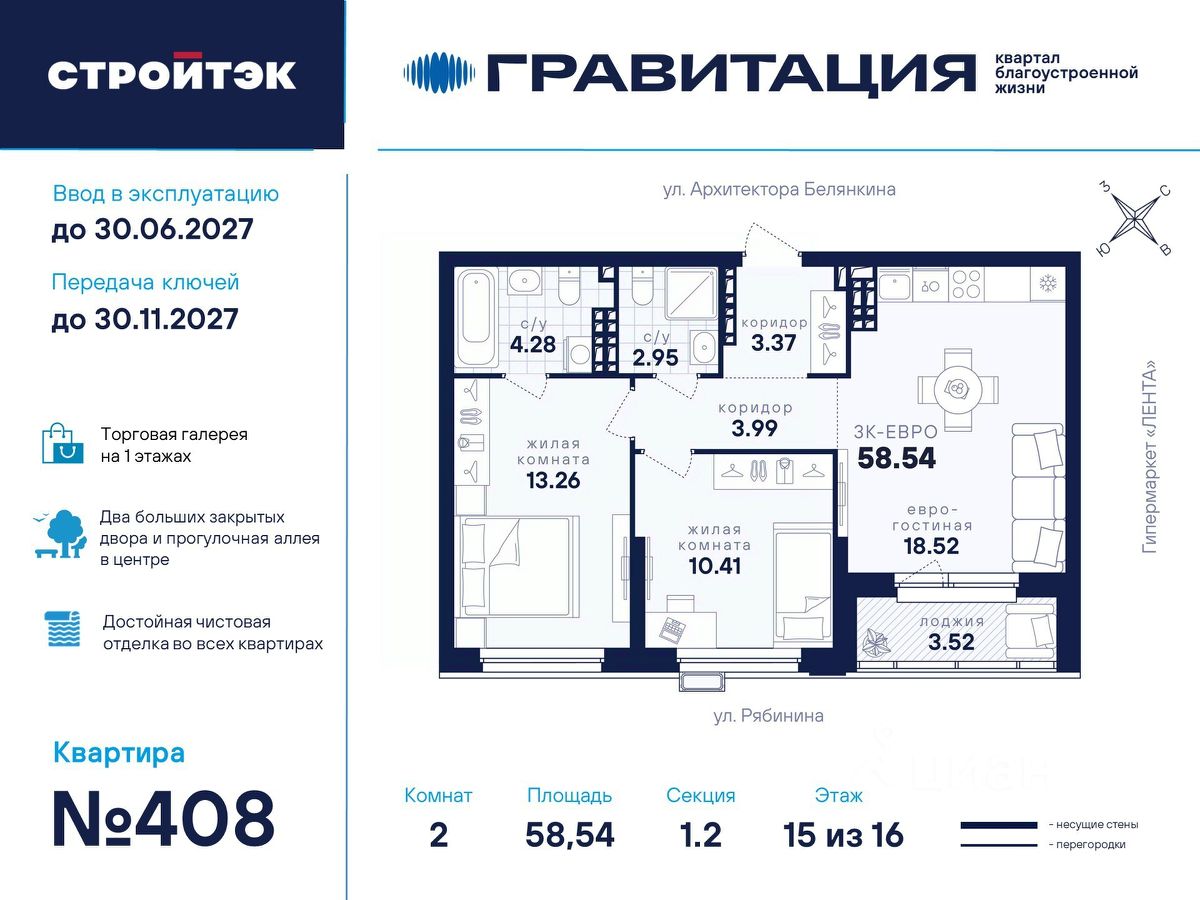 Гравитация — уютный и обособленный, и в то же время открытый и просторный квартал. Всё рядом: супермаркеты и парки, кино и рестораны, школы и сады. В нескольких шагах набережная реки Патрушихи.