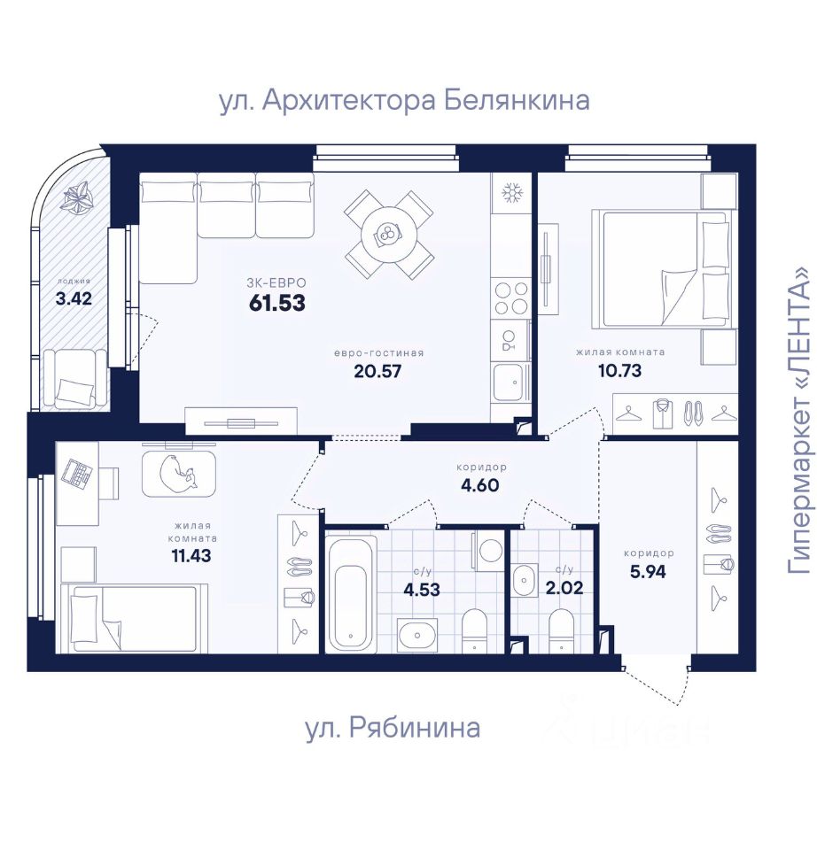 Продаётся 2-комнатная квартира в строящемся доме (Дом 1), срок сдачи: II-кв. 2027, общей площадью 61.53 кв.м., на 13 этаже. Новый жилой комплекс "Гравитация" от застройщика "Стройтэк" расположен по адресу: г. Екатеринбург, улица Рябинина.