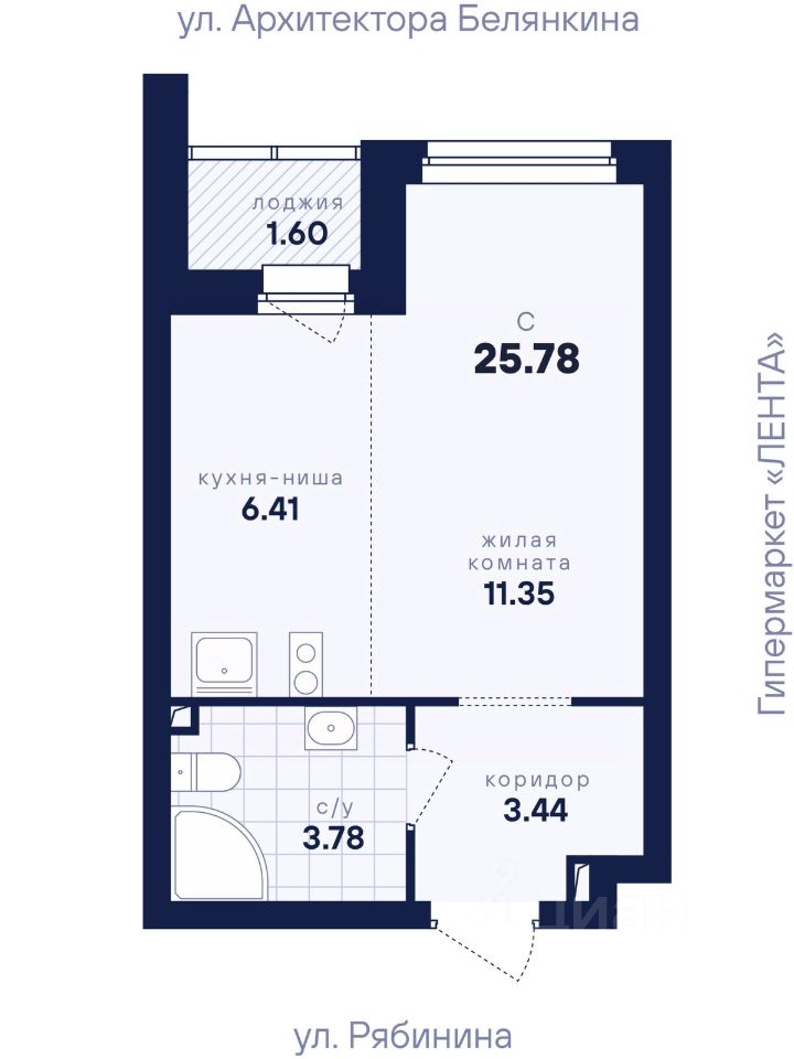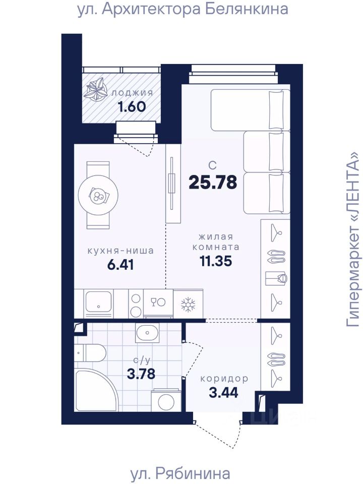 Общая площадь25,78 м²