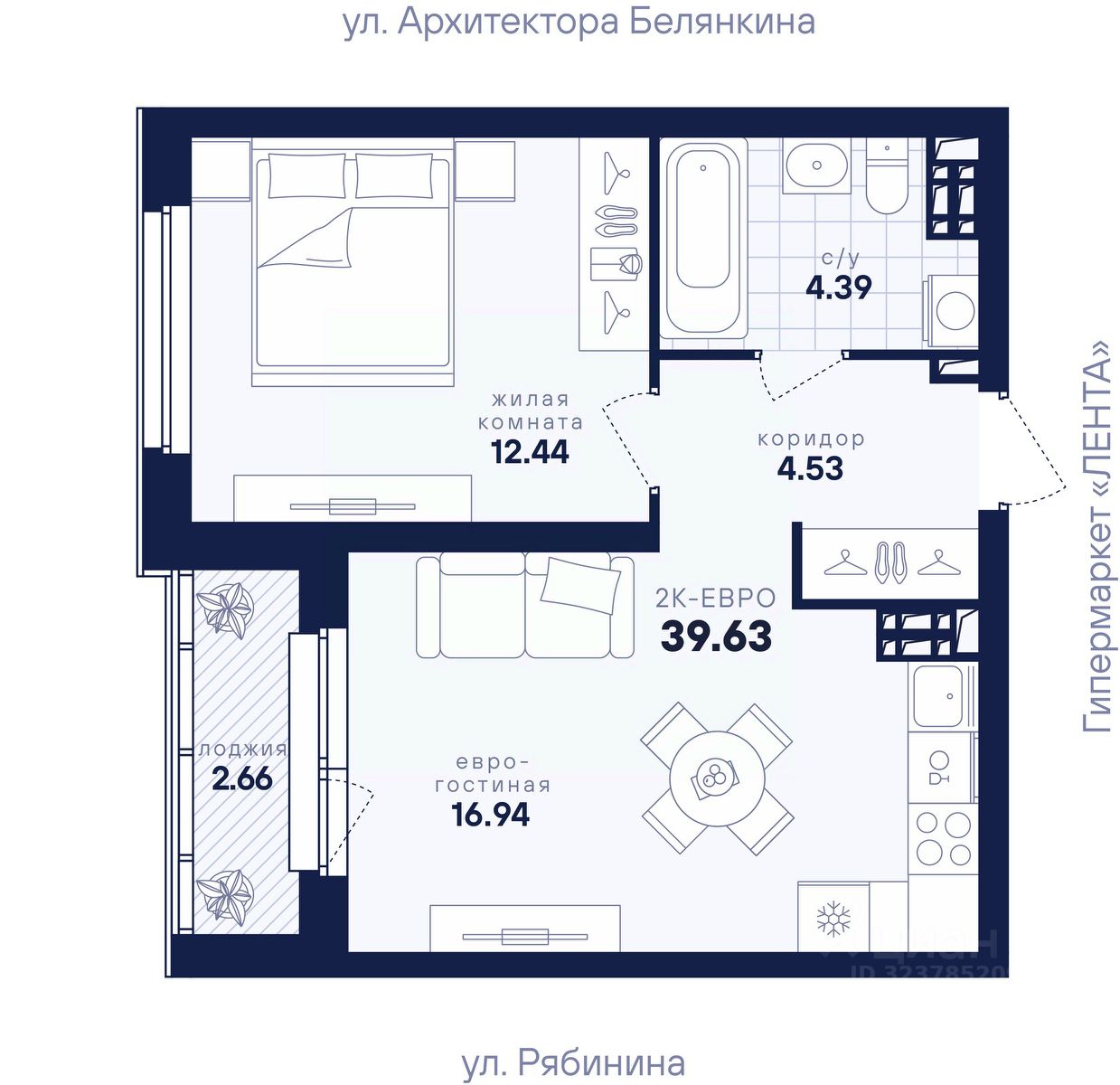 Общая площадь39,63 м²
