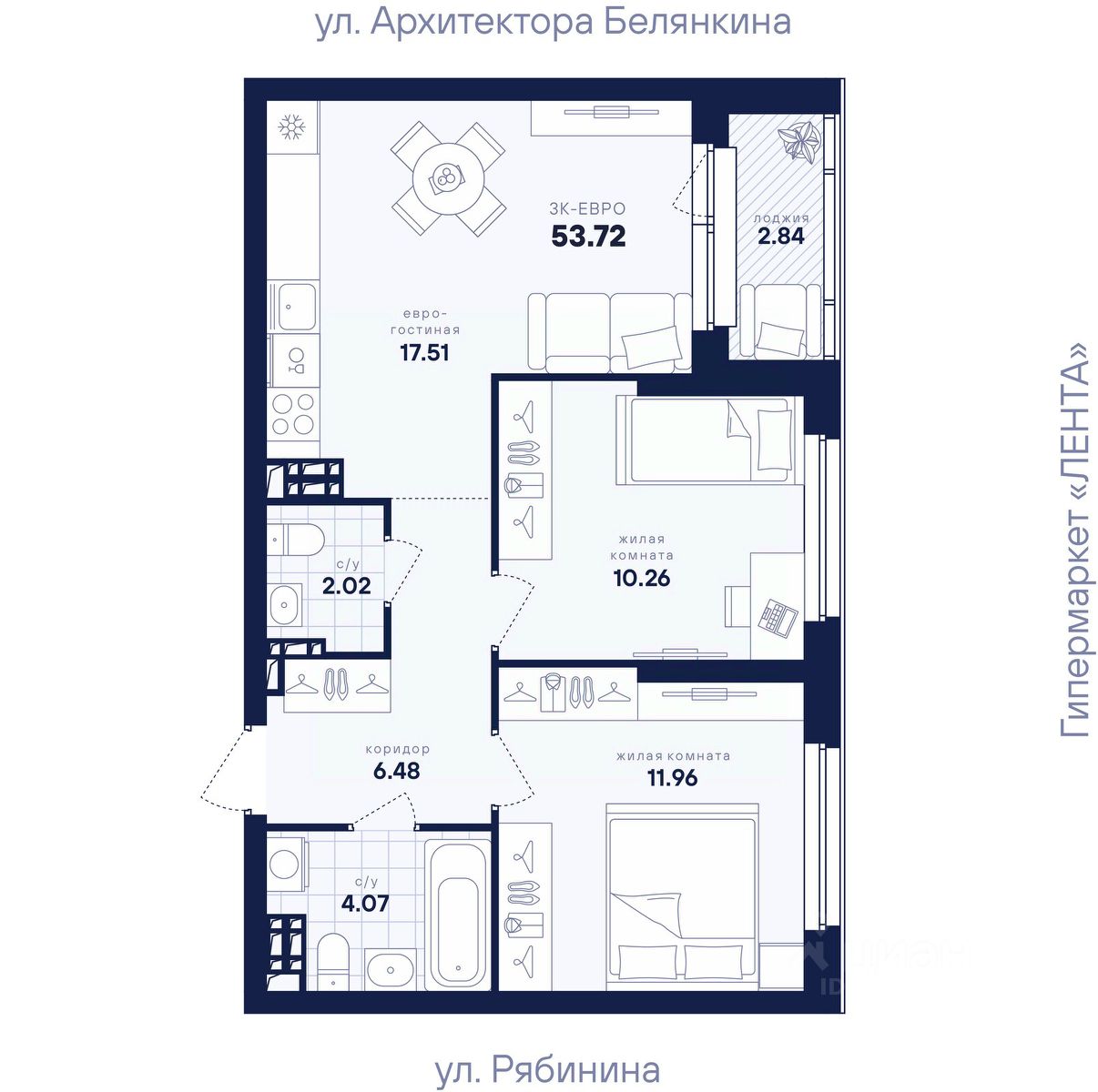 Продаётся 2-комнатная квартира в строящемся доме (Дом 1), срок сдачи: II-кв. 2027, общей площадью 53.72 кв.м., на 9 этаже. Новый жилой комплекс "Гравитация" от застройщика "Стройтэк" расположен по адресу: г. Екатеринбург, улица Рябинина.