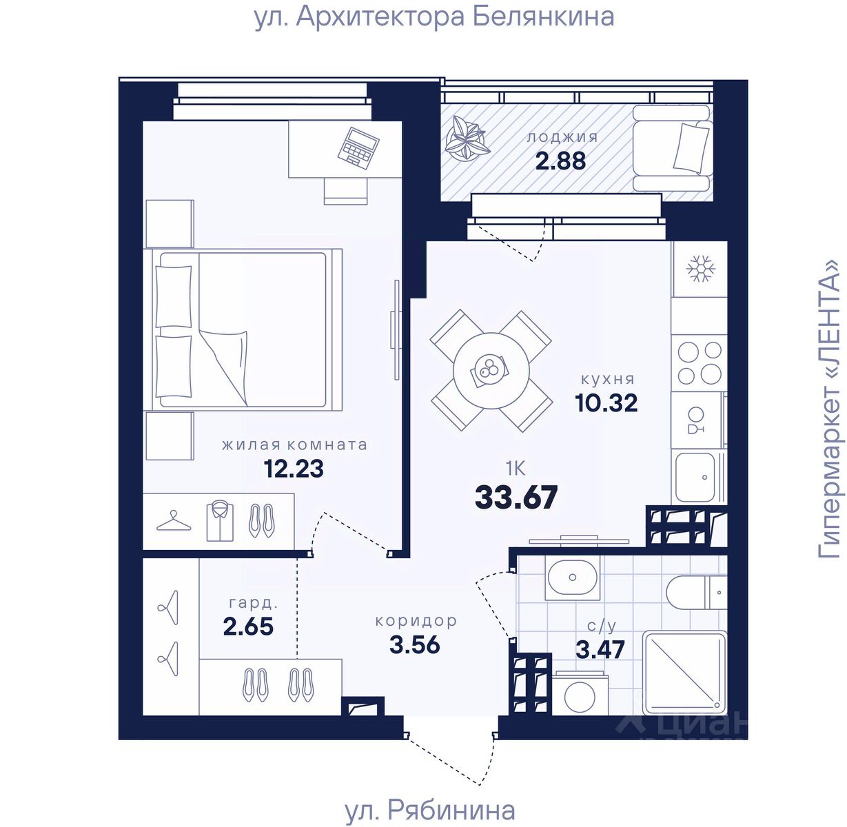 33,67 м²