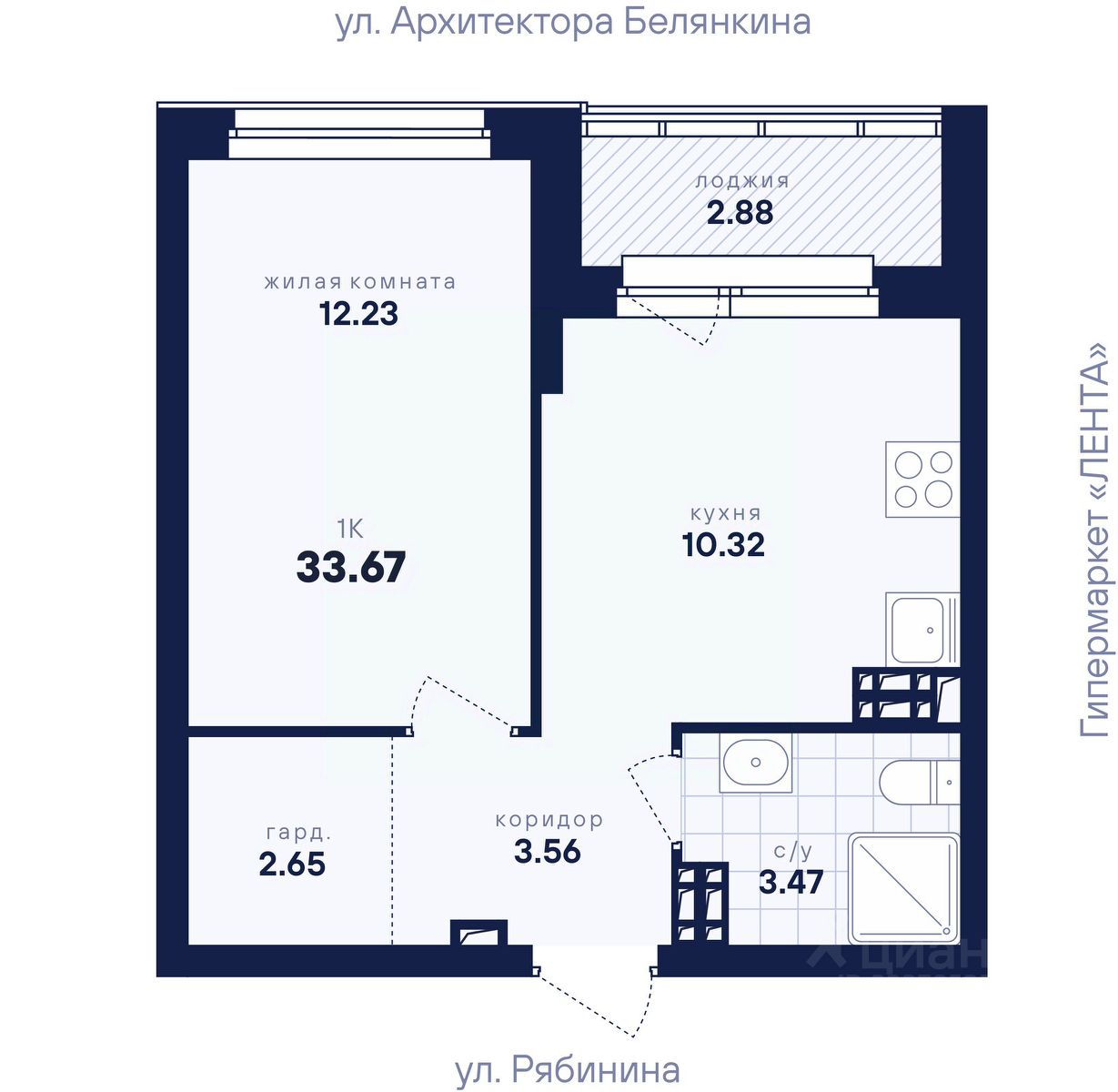 33,67 м²